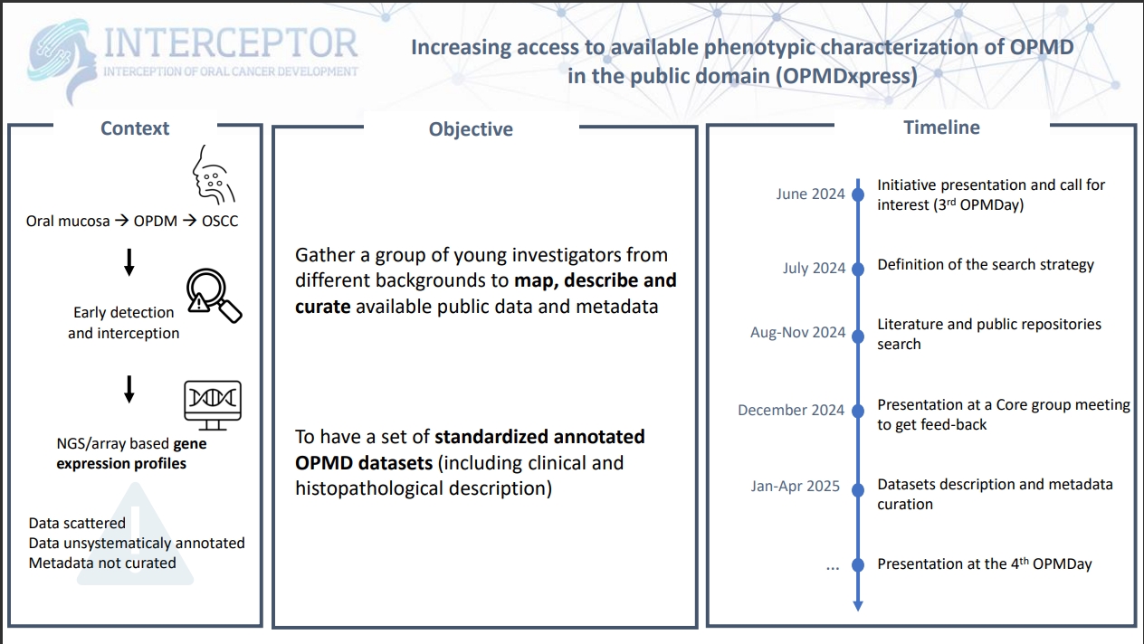 As part of the INTERCEPTOR COST Action, we are launching OPMDxpress, a collaborative effort led by a network of young, multidisciplinary researchers across Europe (including experts in biology, clinical research, data science, bioinformatics, and histopathology). The project aims to: